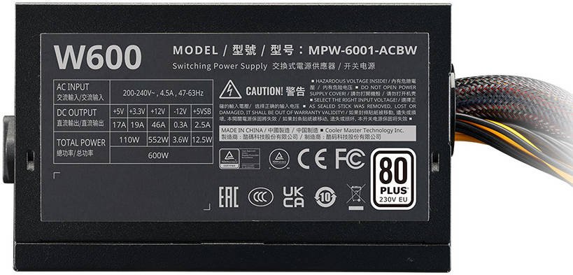 Description for Cooler Master Elite NEX 600W 230V Non Modular Power Supply, 80 Plus Standard Certified, Active PFC & Dual Forward Topology Design, 120mm Sleeve Fan, UK Plug, Black | MPW-6001-ACBW-BUK