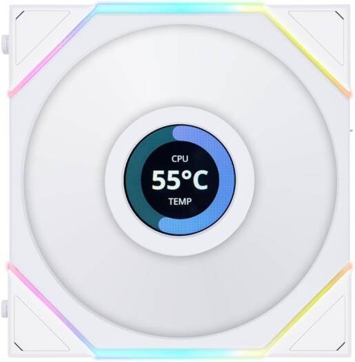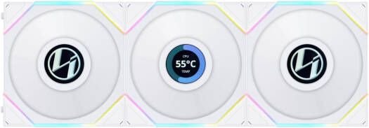 Lian Li Uni Fan TL 120 Case Fan, 1.6†LCD, 120mm Fan Size, 1900 RPM Fan Speed, 62 CFM Airflow, PA66 / PBT Materials, Fluid Dynamic Bearing, Triple Pack, W/ Controller, White | G99.12TLLCD3W.00