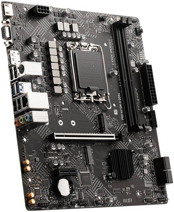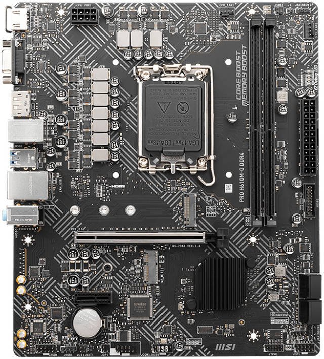 Description for MSI Pro H610M-G DDR4 Micro-ATX Motherboard, Socket LGA 1700, H610 Chipset, 1x Intel I219V Gigabit LAN Controller, 2 DIMM Slots, M.2 Slot, PCI-E X16, SATA III, HDMI, VGA, DP | 911-7D46-031