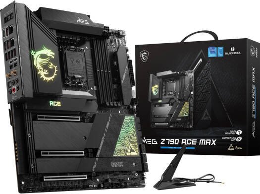 Unleash the power of gaming with MEG Z790 ACE MAX. Boasting premium aesthetics featuring a sleek black finish and silver embellishments, this E-ATX gaming motherboard takes Intel®'s 14th Gen and 13th Gen Core processors to new heights. With exceptional hardware support and durability, it thrives in extreme settings, pushing boundaries in processor overclocking, DDR5 memory, and graphics card (GPU) performance. Elevate your gaming experience with MEG Z790 ACE MAX.