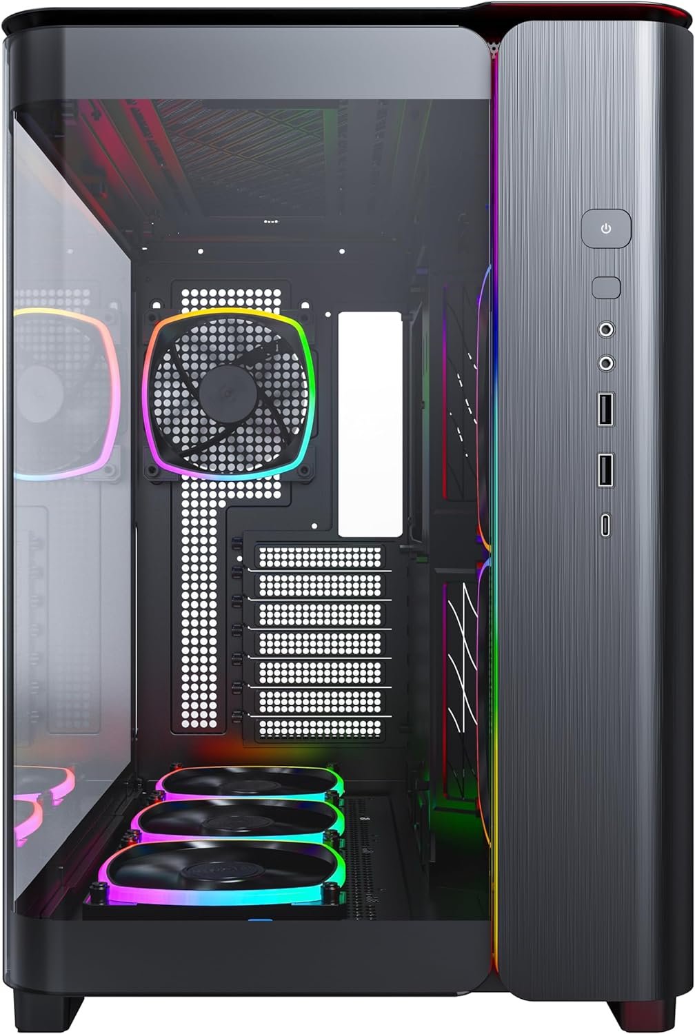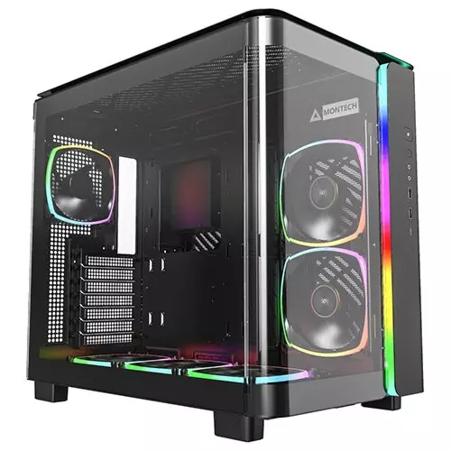 MONTECH, KING 95 PRO Dual-Chamber ATX Mid-Tower PC Gaming Case, High-Airflow, Toolless Panels, Sturdy Curved Tempered Glass Front, Six ARGB PWM Fan Pre-installed with Fan Hub, Black